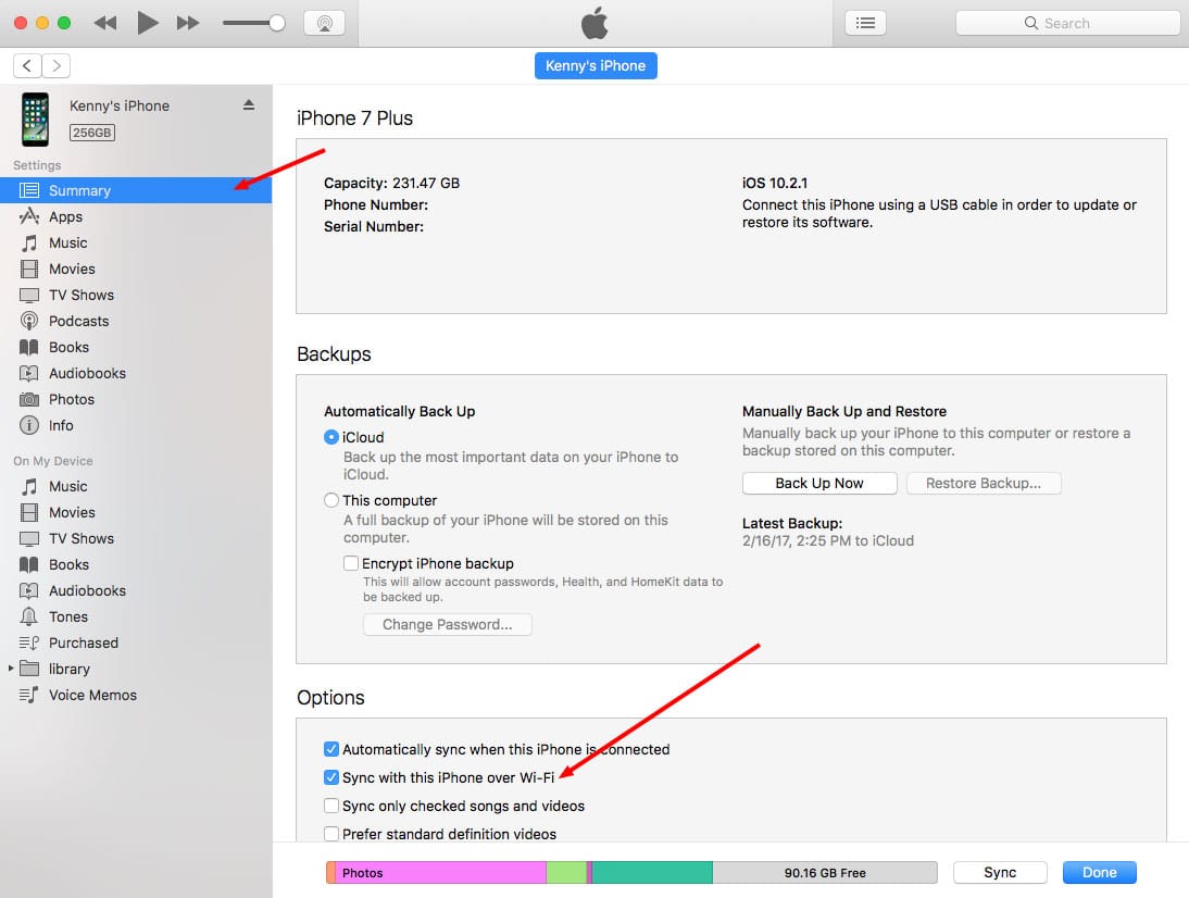 While you're plugged in, you might as well turn on the feature to sync your iPhone over wifi. Then you won't have to pull out the charger cable next time you need to sync. That's located on the main summary page of the phone sync settings: