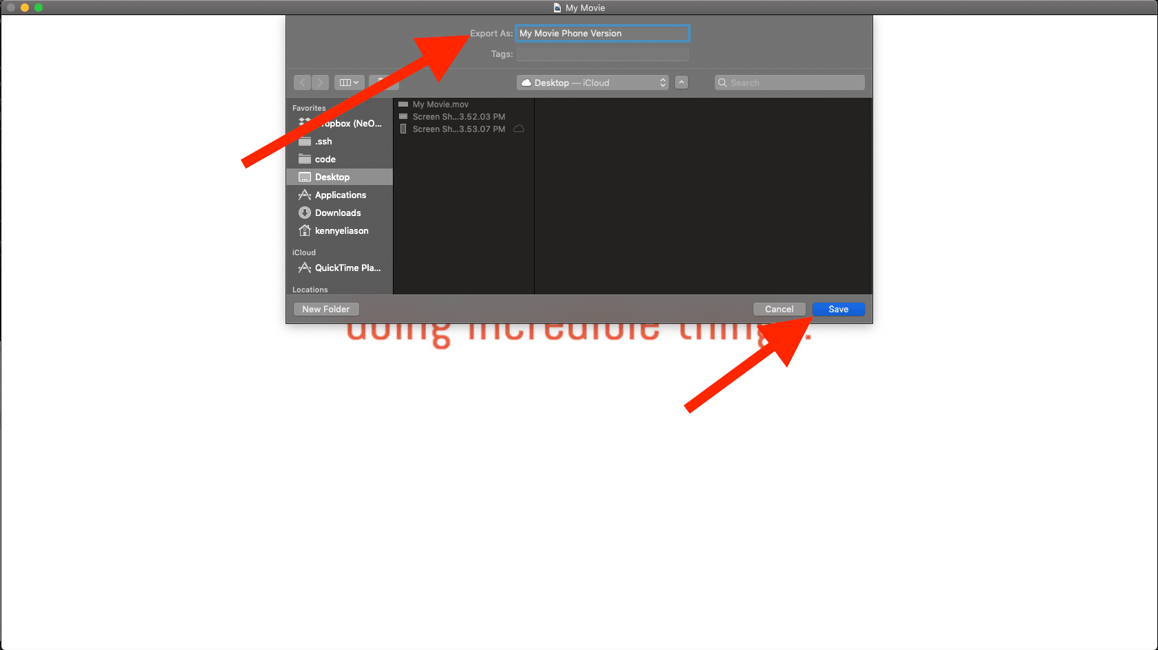 - Click File -> Export As -> 4k (or 1080 if 4k not available)