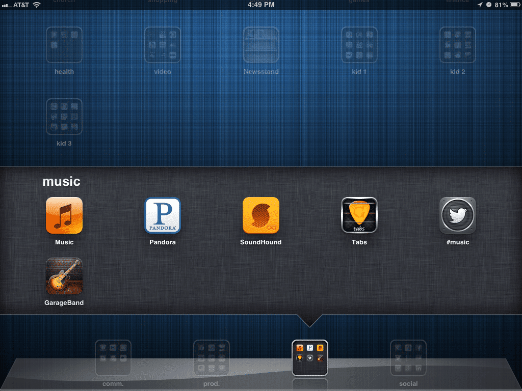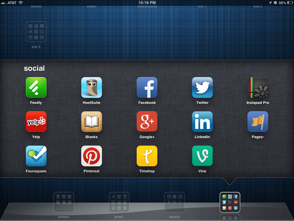 Alrighty, now to the good folders in my home row. This is my "comm." folder, or communications folder. These are the apps I use to communicate with the whole wide world...
