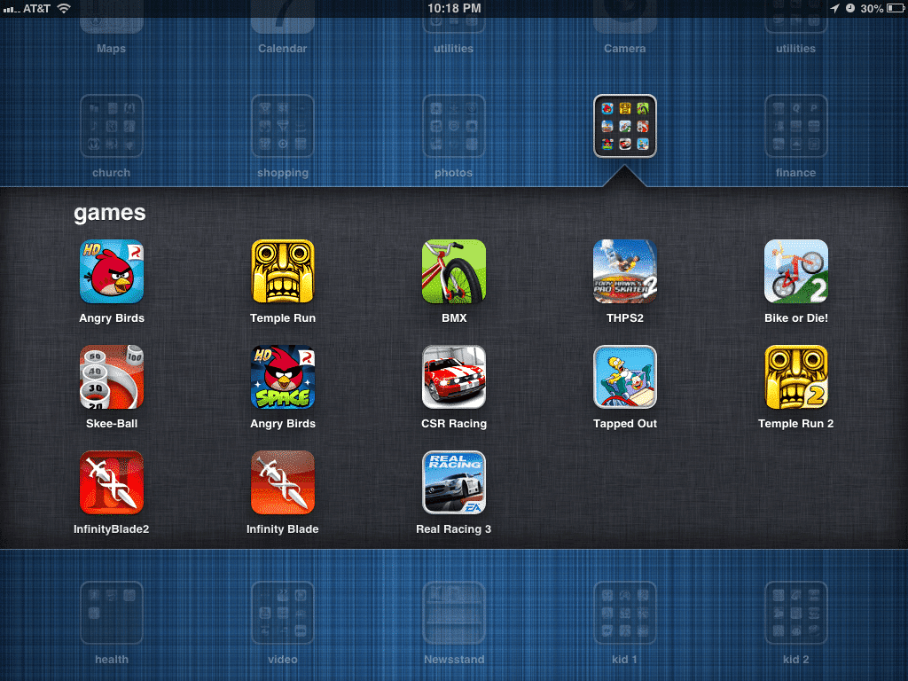 Here are the few game apps I have downloaded, many of which I'll play for a while then not play anymore. These are all the ones that I've gotten addicted to enough to have a permanent residence on my iPad.