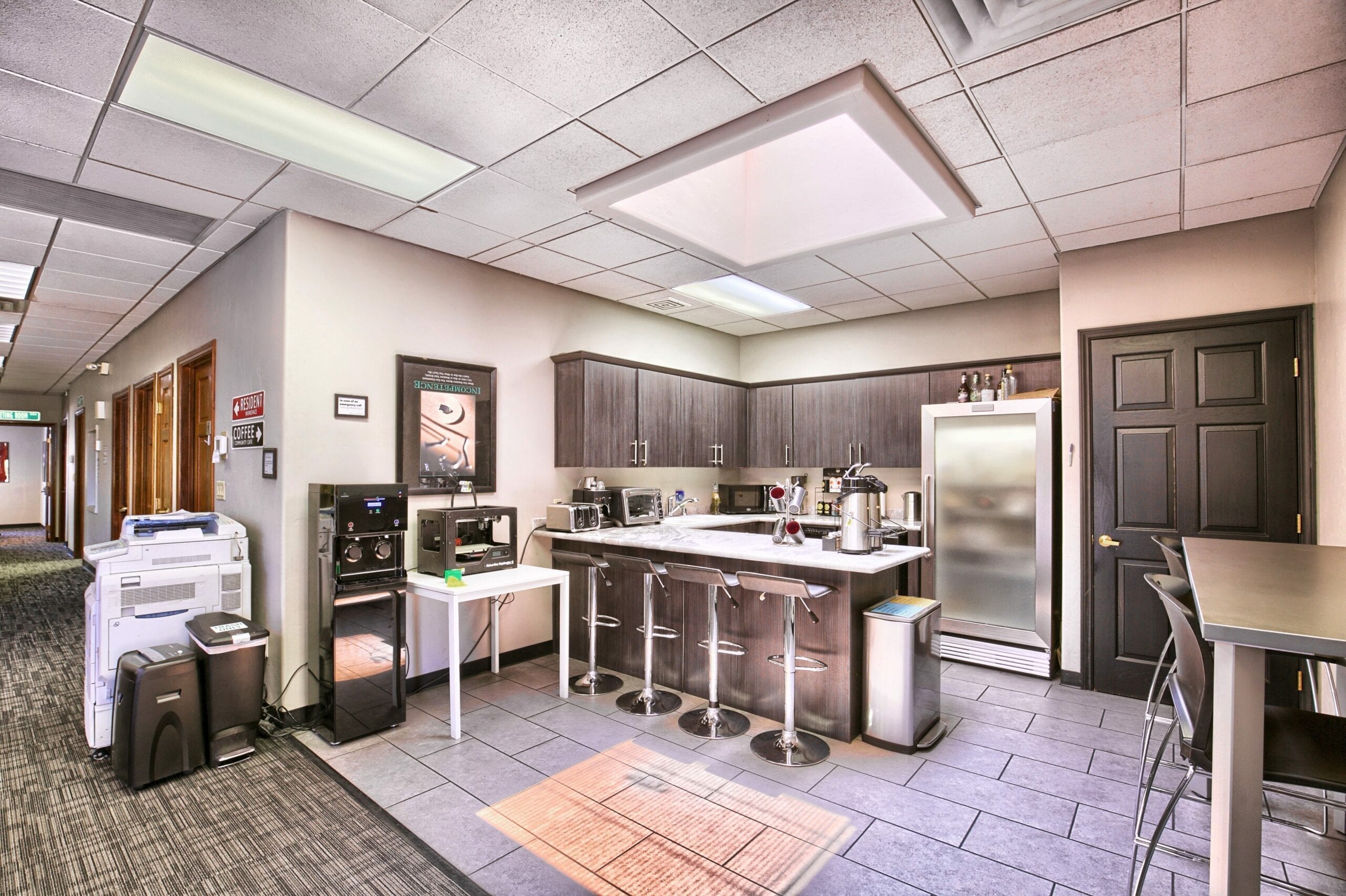 There are a lot of coworking spaces popping up around the world. The largest is WeWork, which is worth literally billions of dollars. Then there are a lot of smaller places, like the one we own called Work in Progress. Here are some pictures of our coworking space, which is a pretty standard representation of what you might find in some coworking spaces: